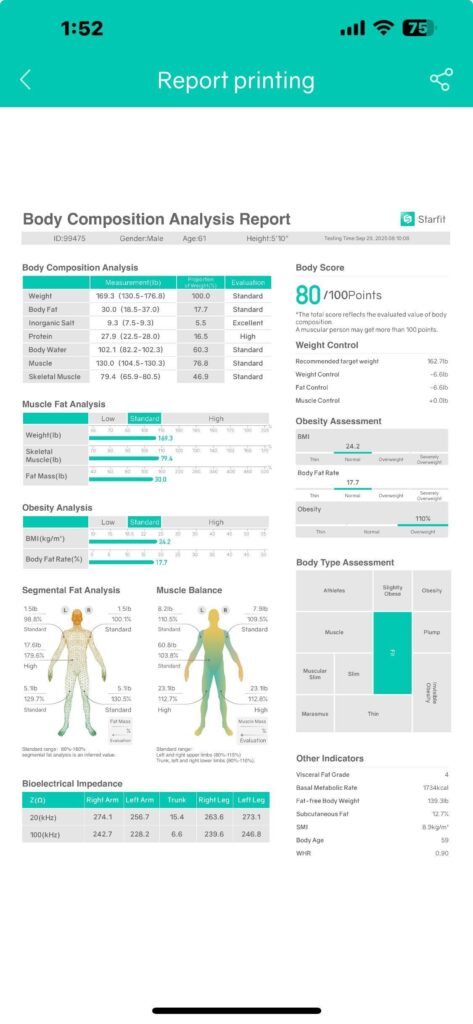 The App provides a printable report detailing your measurements.