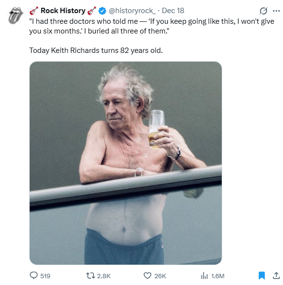 Rolling Stone’s guitarist Keth Richards is a case in point.