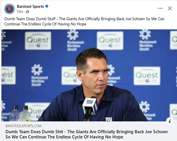 On a side note, the NYG are currently trying to recruit John Harbaugh as their new coach. He is a proven winner and may finally revamp their outdated and ailing decision-making process. Giant fans are crossing their fingers that they won’t find a way to screw this one up.