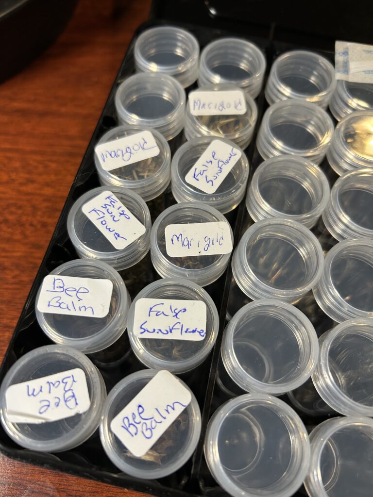 First, in the fall, I collected various seeds from my garden, labeling and storing them in plastic containers.